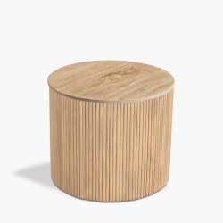 IFIPF-1009 Round End Table with Travertine Marble, Fluted Base