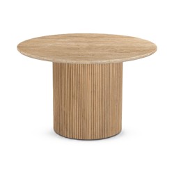 IFIPF-1017 Round Dining Table with Travertine Marble, Fluted Base