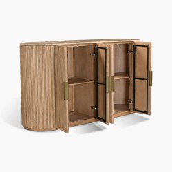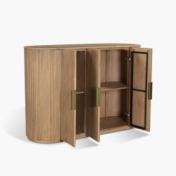 IFIPF‑1021 Buffet Cabinet - Travertine Top, Light Oak Fluted Body Overview A refined buffet cabi..