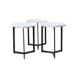 RK-36318B Hex End Table (set of 3) - Black Finish / White Marble