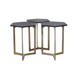 RK-36318G Hex End Table (set of 3) - Gold Finish / Black Marble